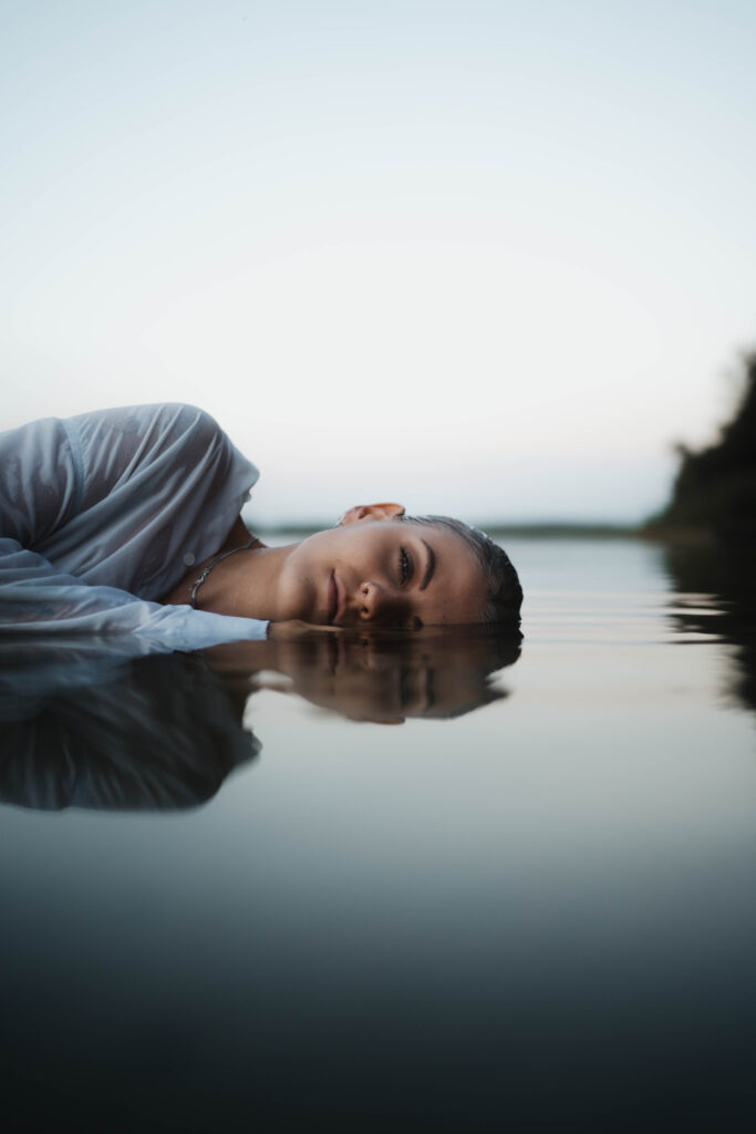 Zur Mittagszeit ist das Licht am grellsten und fällt senkrecht von oben. Das sorgt für starke Kontraste und harte Schatten zum Beispiel unter den Augen oder der Nase. Die Bilder wirken klar, aber oft auch unruhiger. Häufiges Blinzeln durch das grelle Licht ist ebenfalls eine Herausforderung. Shootings zur Mittagszeit empfehle ich wenn möglich nur bei bewölktem Himmel oder an Orten mit ausreichend Schatten, wie Wäldern oder Innenräumen.